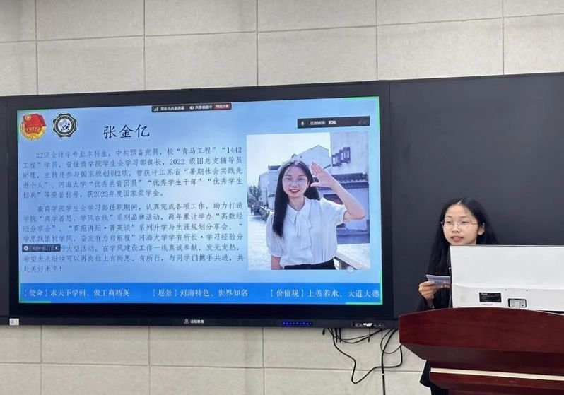 新一届学生会主席团候选人进行演讲,候选人员在演讲中总结了其在参与学生会工作之后的学习与工作历程,分享了学生会工作带给她们的宝贵经验与收获感悟,并对未来的工作进行展望和规划。