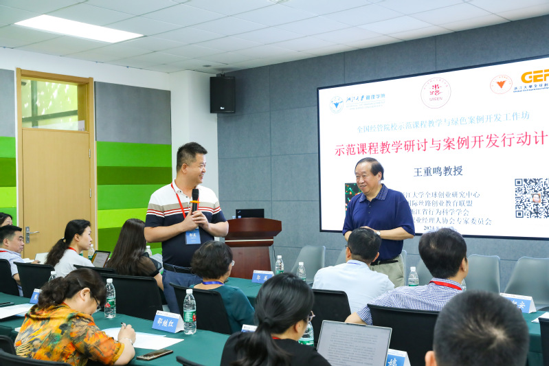 17日上午,在王重鸣教授的主持下,工作坊聚焦《创业能力》、《管理心理学》、《责任与可持续管理》三门示范课程教学,课程负责人们分享了他们的教学新体验与感悟。