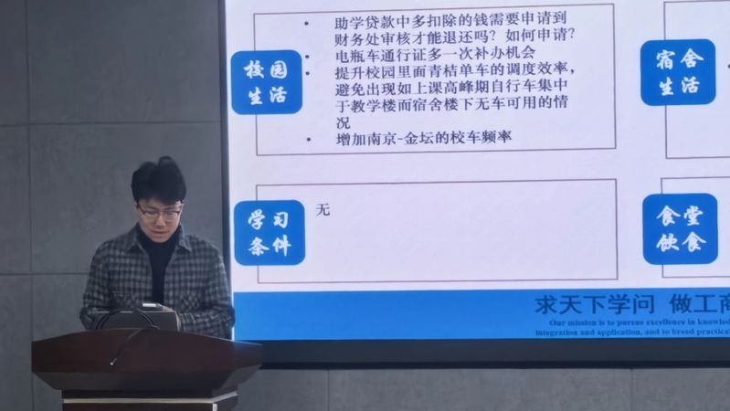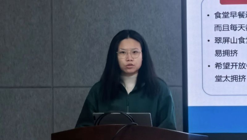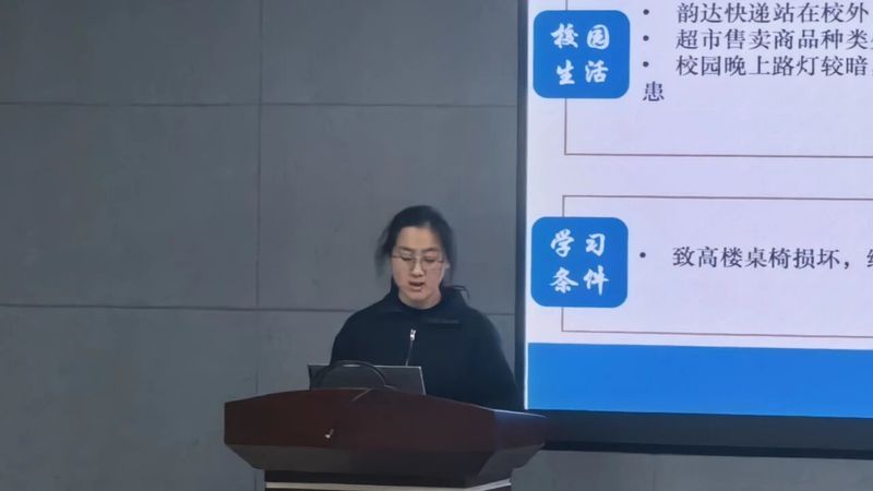 会议伊始,本科各年级生活委员率先进行发言。他们紧扣同学们普遍关切的校园生活重点领域,分别从校园饮食、交通出行、快递购物、宿舍生活、学习环境、安全隐患等多个维度切入,针对性地提出了一系列具体可行的改进建议。