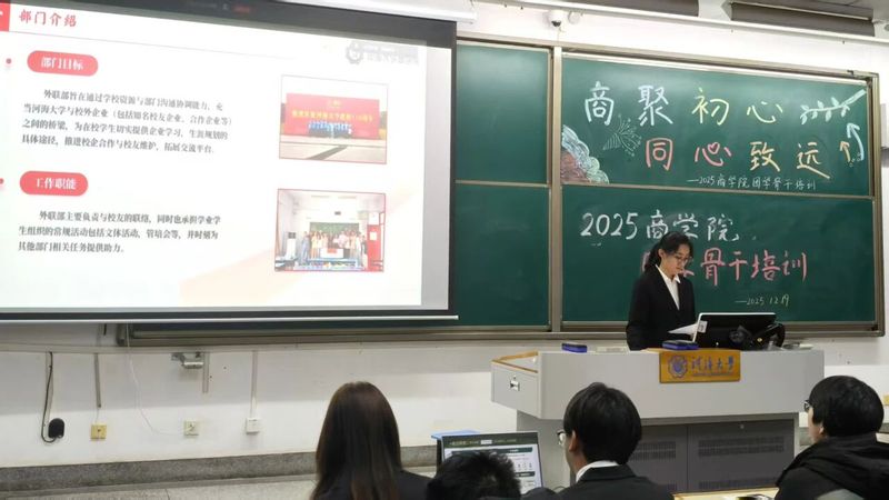 本次培训由德赢ac米兰官方合作vwin学生会承办,主要梳理德赢ac米兰官方合作vwin学生会的组织架构、运作机制、工作开展情况,并规划未来发展方向,加深彼此部门了解。培训由学生会各部门负责人主讲,学院团委负责人陈鹏老师、2025级辅导员钱雨欣及德赢ac米兰官方合作vwin团学组织各部门部长、干事参与本次活动。